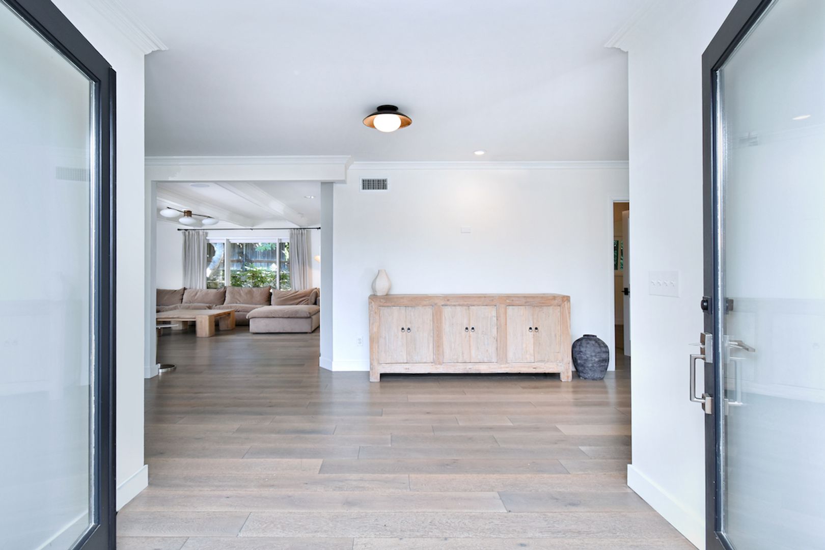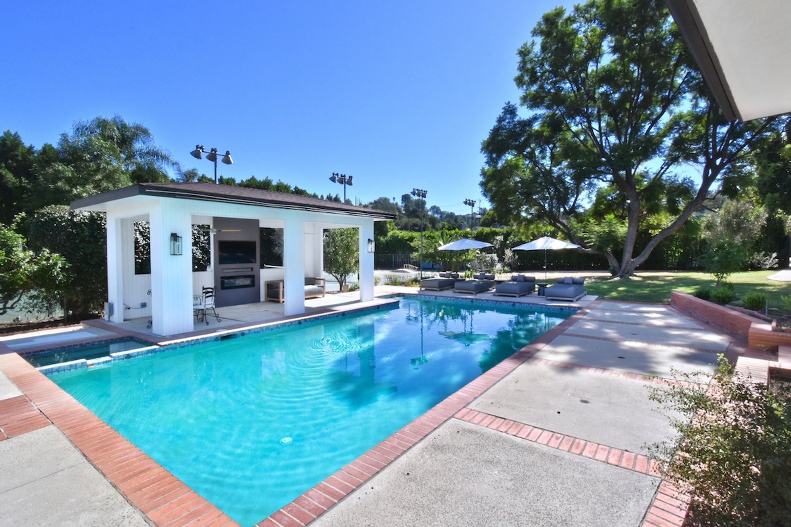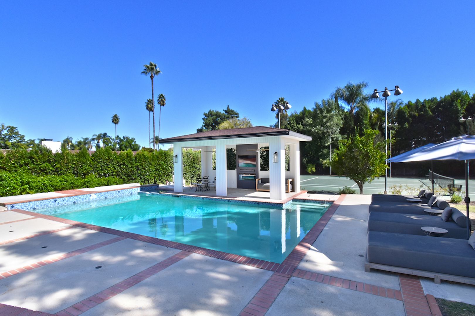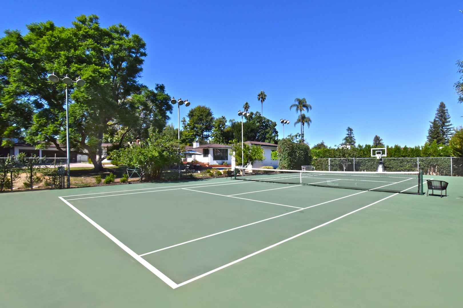 Absolutely one of the most private and secluded tennis court homes in Encino, located south of the blvd in the Rancho Estates enclave. Enter through a long double gated private driveway to a large motor court and sprawling single level mid-century estate with 35,000 sqft of flat resort like grounds. Light oak floors, stunning kitchen, oversized master suite, clear glass door 3 car garage comes with air conditioning should you wish to create a gym or game room. Huge heated pool/spa with pool cabana that includes a TV, fireplace, fans, and a BBQ. This is a true entertainers paradise!