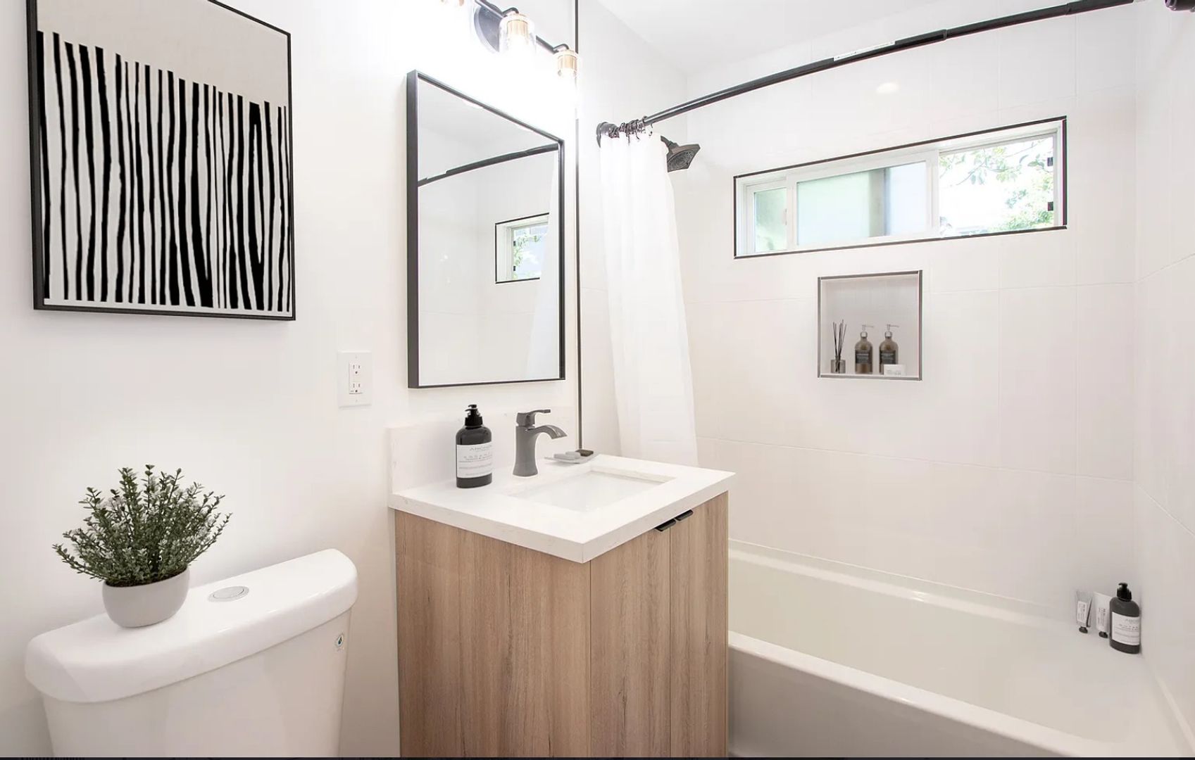 Recently remodeled designer unit! Come and check out this absolutely stunning unit in the heart of West Hollywood. Set back from the street, extremely quiet with views of the lush green trees in the tranquil courtyard. Interior features a completely remodeled unit with no expenses spared. Kitchen and bath with modern cabinetry & slate black tile floors, quartz counters, designer backsplash tiles, wood floors throughout, large bedroom, picturesque windows in the living room, in-unit washer/dryer. *Pictures are general stock phots of the property and may not be the actual unit, but will have the same finishes.
